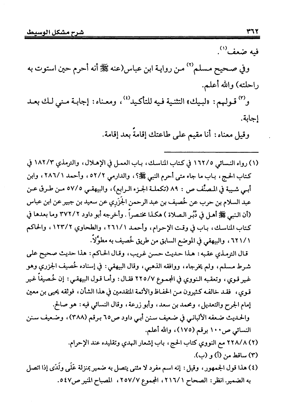 (¬1) رواه النسائي 5/ 162 في كتاب المناسك، باب العمل في الإهلال، والترمذي 3/ 182 في كتاب الحج، باب ما جاء متى أحرم النبي - صلى الله عليه وسلم -؟، والدارمي 2/ 52، وأحمد 1/ 286، وابن أبي شيبة في المصنَّف ص: 89 (تكملة الجزء الرابع)، والبيهقي 5/ 57 من طرق عن عبد السلام بن حرب عن خُصيف بن عبد الرحمن الجَزَرِي عن سعيد بن جبير عن ابن عباس (أن النبي - صلى الله عليه وسلم - أهل في دُبُر الصلاة) هكذا مختصراً، وأخرجه أبو داود 2/ 372 وما بعدها في كتاب المناسك، باب في وقت الإحرام، وأحمد 1/ 261، والطحاوي 2/ 123، والحاكم 1/ 621، والبيهقي في الموضع السابق من طريق خُصيف به مطوَّلاً.