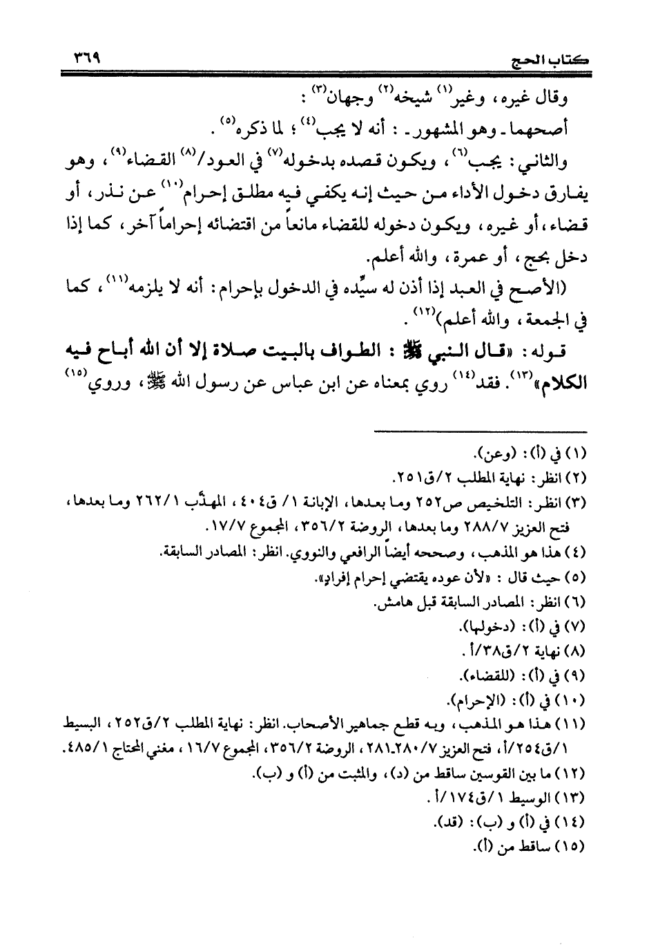 قوله: "قال النبي - صلى الله عليه وسلم -: الطواف بالبيت صلاة إلا أن الله أباح فيه الكلام" (¬13). فقد (¬14) روي بمعناه عن ابن عباس عن رسول الله - صلى الله عليه وسلم -، وروي (¬15)