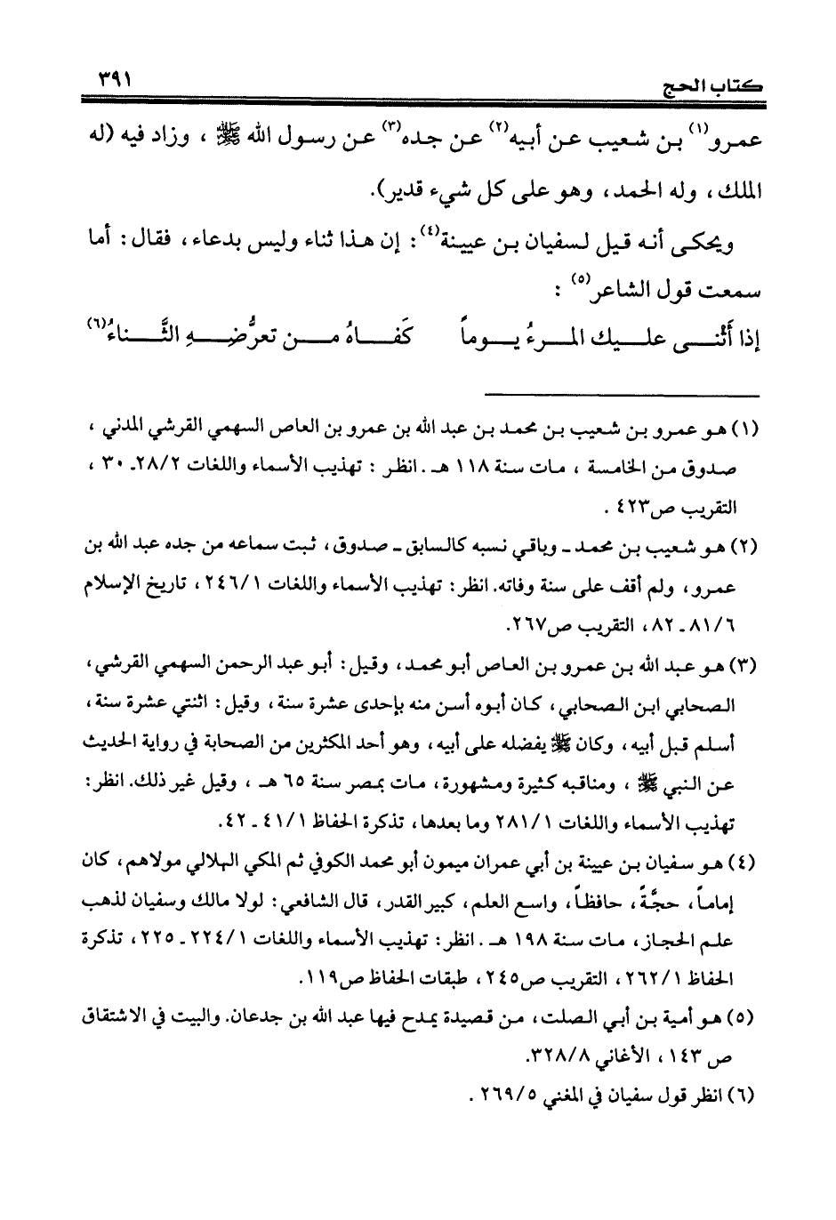(¬1) هو عمرو بن شعيب بن محمَّد بن عبد الله بن عمرو بن العاص السهمي القرشي المدني، صدوق من الخامسة، مات سنة 118 هـ. انظر: تهذيب الأسماء واللغات 2/ 28 - 30، التقريب ص 423.