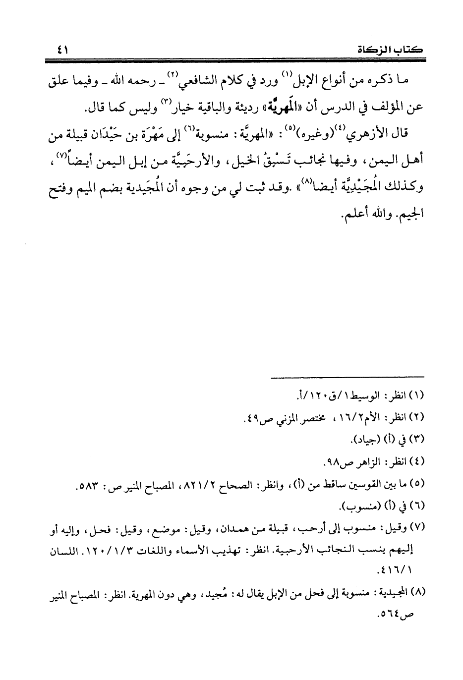 (¬8) المجيدية: منسوبة إلى فحل من الإبل يقال له: مُجيد، وهي دون المهرية. انظر: المصباح المنير ص 564.