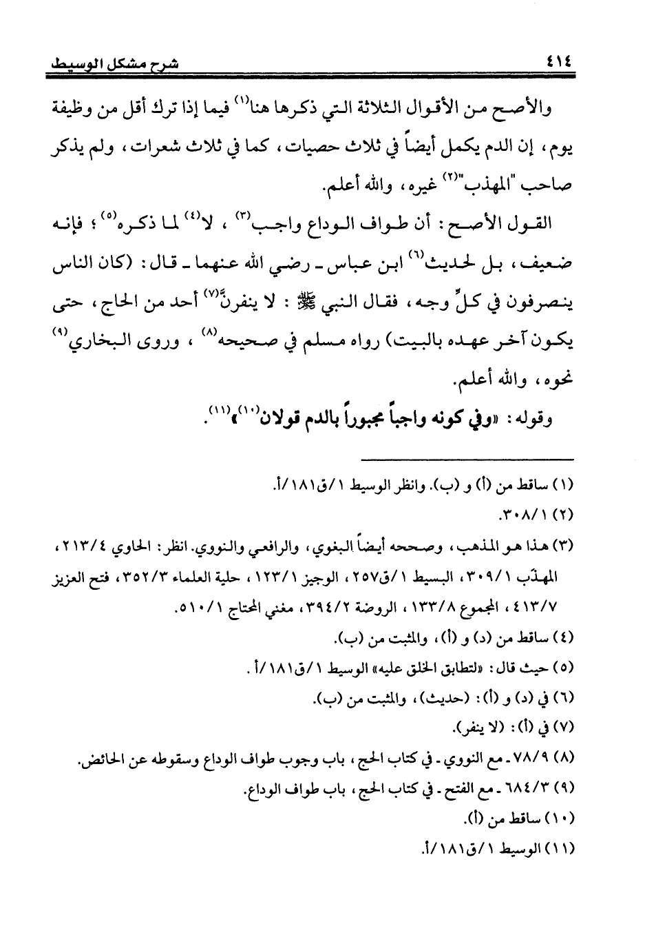 (¬8) 9/ 78 - مع النووي - في كتاب الحج، باب وجوب طواف الوداع وسقوطه عن الحائض.