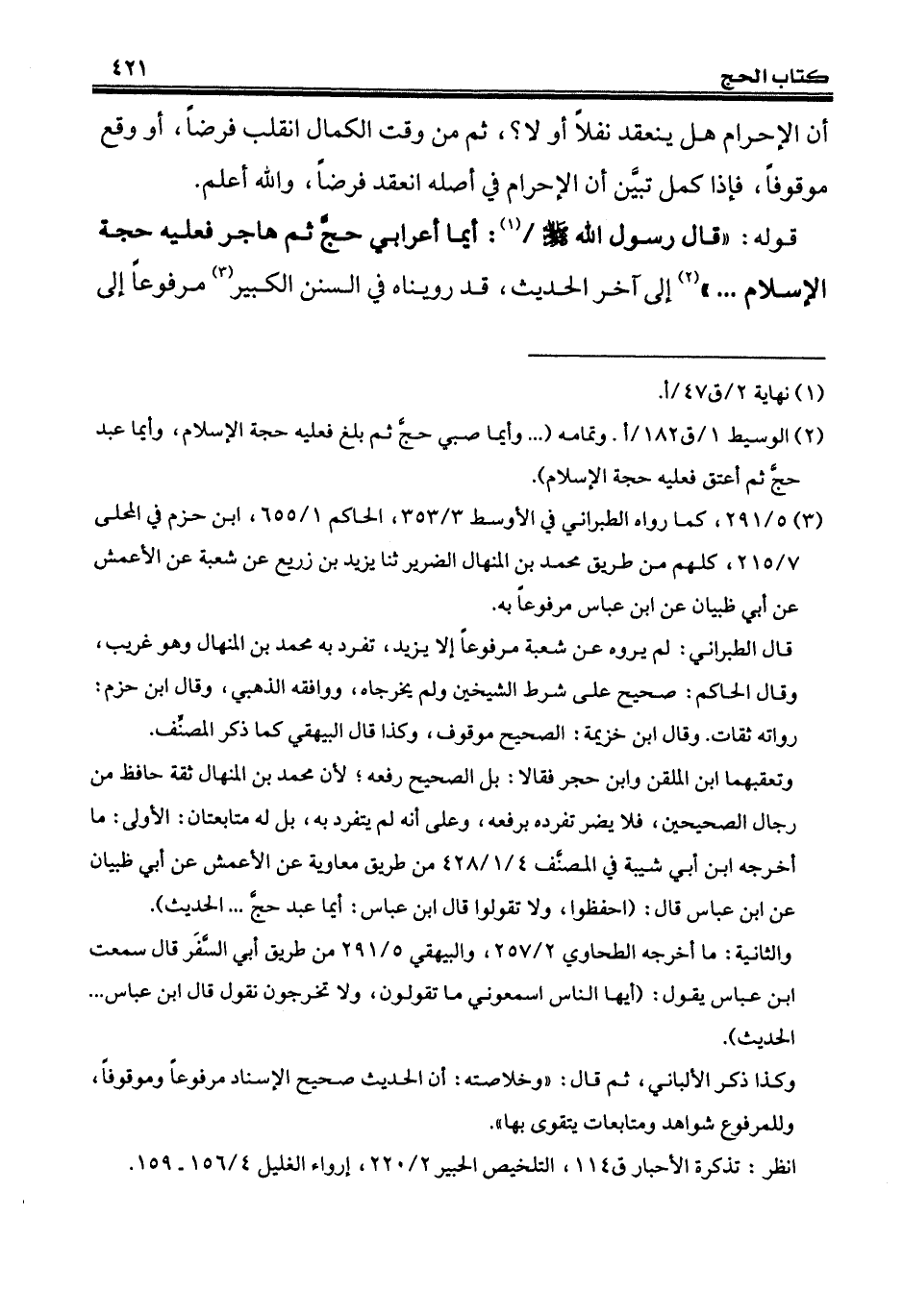 (¬2) الوسيط 1/ ق 182/ أ. وتمامه (... وأيما صبي حجَّ ثم بلغ فعليه حجة الإسلام، وأيما عبد حجَّ ثم أعتق فعليه حجة الإسلام).