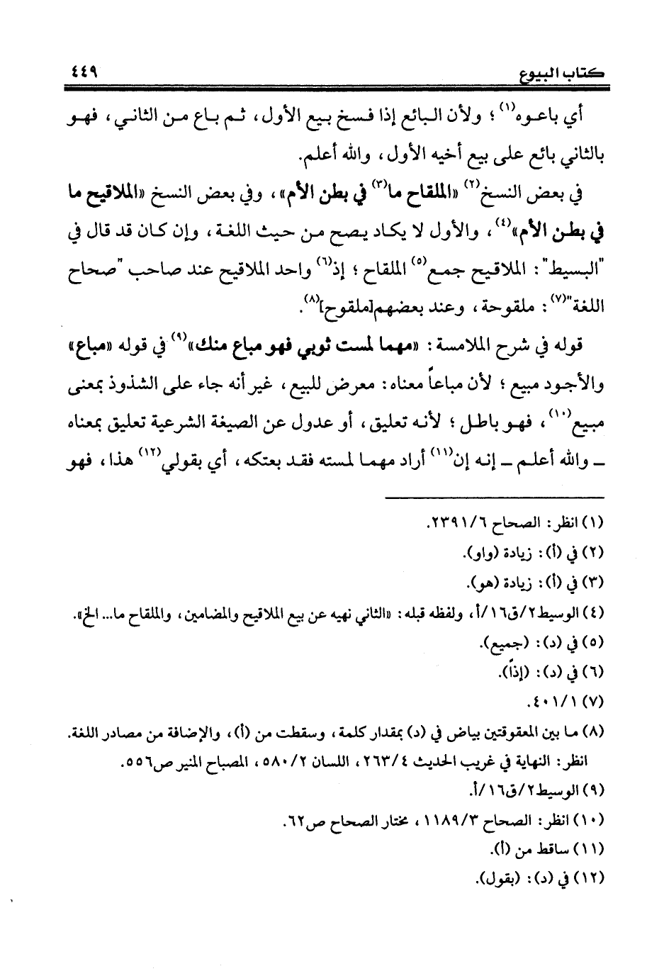 (¬4) الوسيط 2/ ق 16 / أ، ولفظه قبله: "الثاني نهيه عن بيع الملاقيح والمضامين، والملقاح ما ... إلخ".