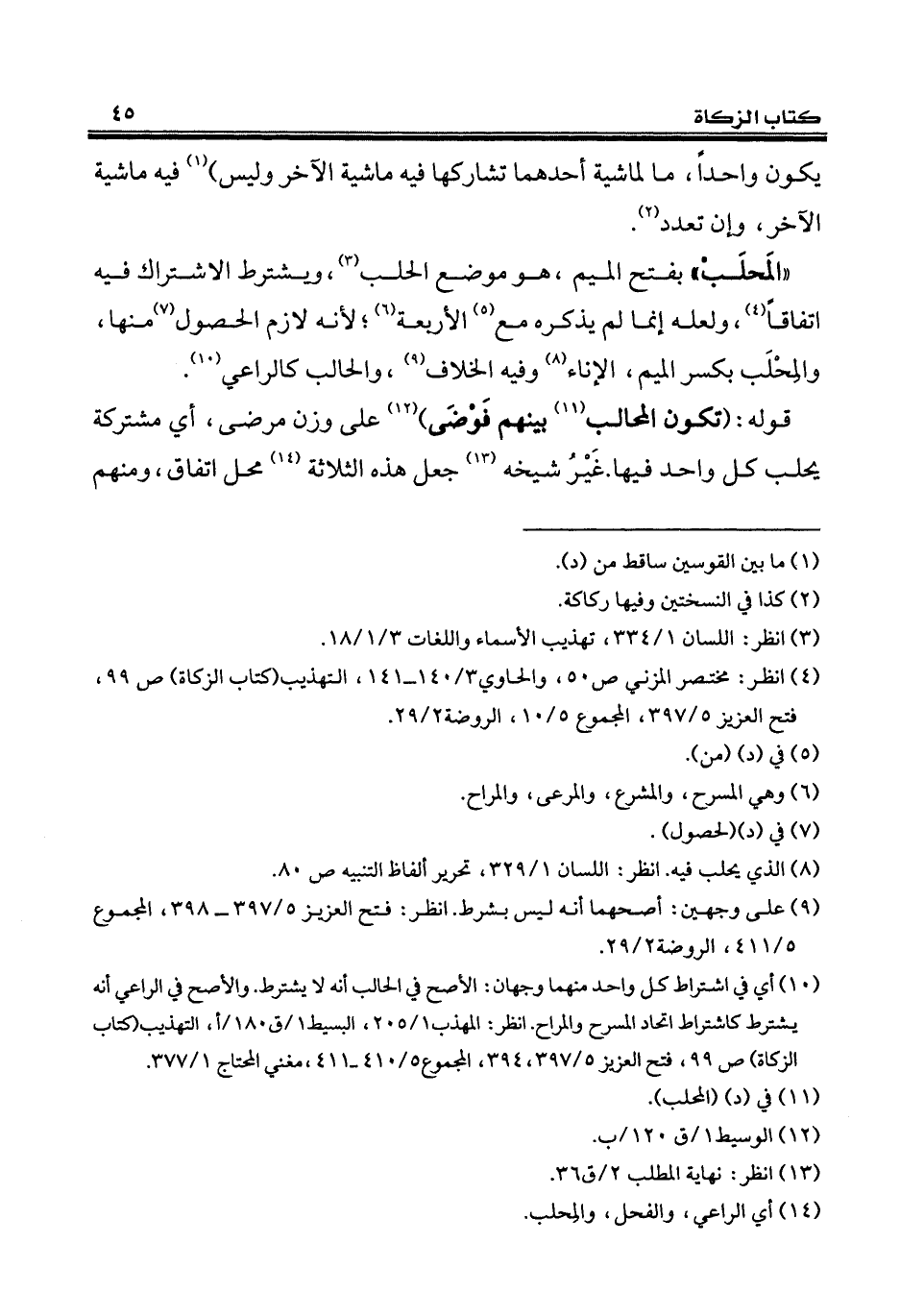 قوله: (تكون المحالب (¬11) بينهم فَوْضَى) (¬12) على وزن مرضى، أي مشتركة يحلب كل واحد فيها. غَيْرُ شيخه (¬13) جعل هذه الثلاثة (¬14) محل اتفاق، ومنهم