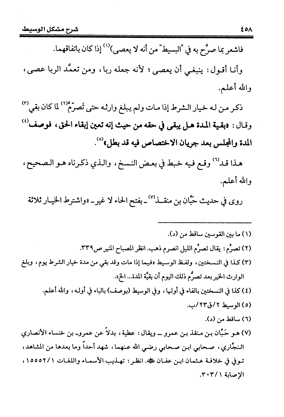 (¬3) كذا في النسختين، ولفظ الوسيط "فيما إذا مات وقد بقي من مدة خيار الشرط يوم، ويلغ الوارث الخير بعد تصرُّم ذلك اليوم أن بقيَّة المدة ... إلخ".