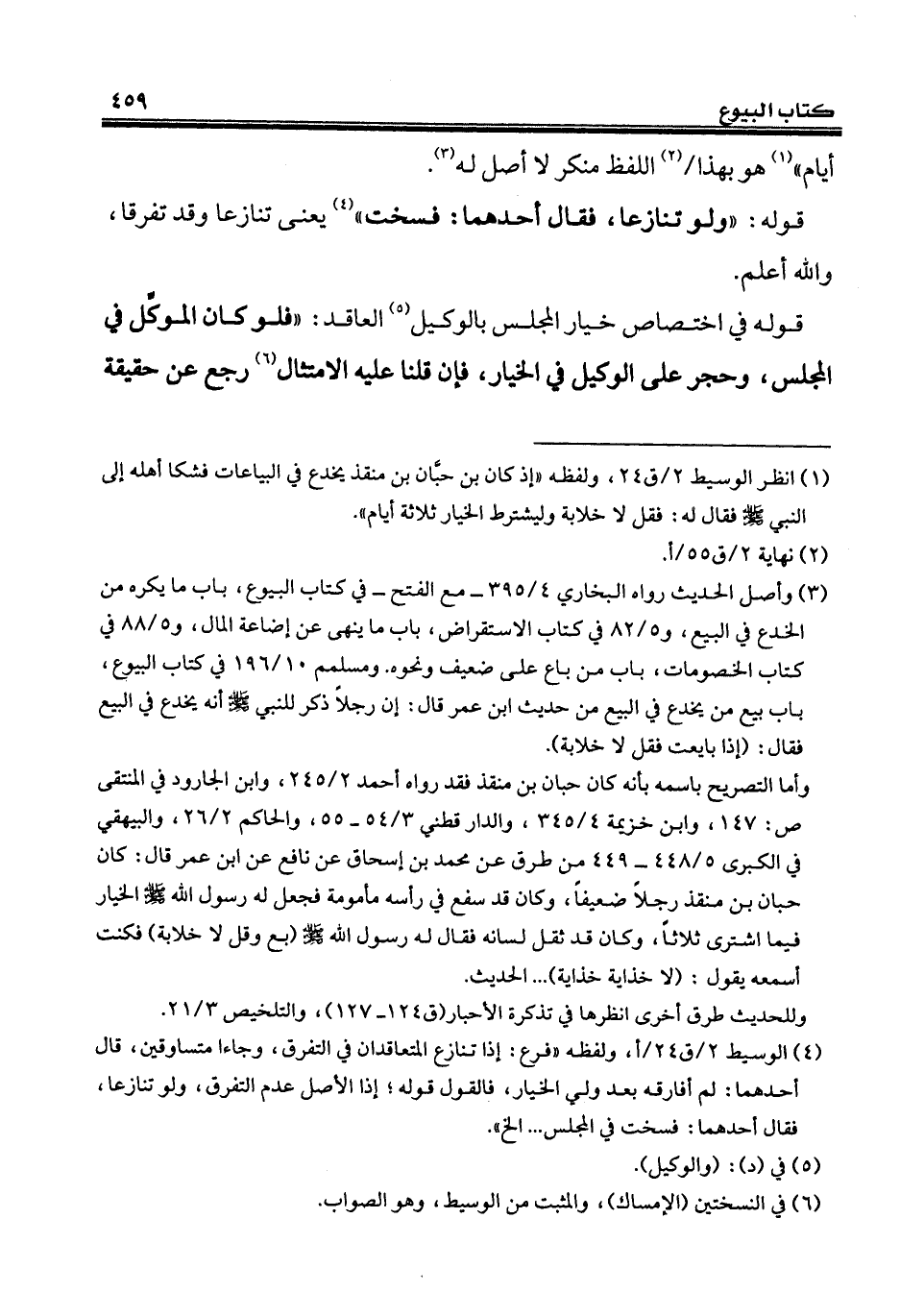 (¬1) انظر الوسيط 2/ ق 24، ولفظه "إذ كان بن حبَّان بن منقذ يخدع في البياعات فشكا أهله إلى النبي - صلى الله عليه وسلم - فقال له: فقل لا خلابة وليشترط الخيار ثلاثة أيام".