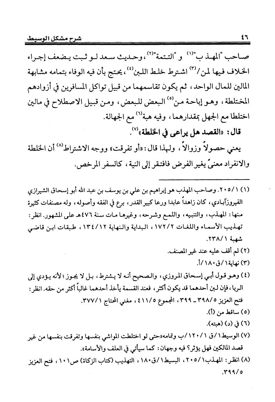(¬1) 1/ 205. وصاحب المهذب هو إبراهيم بن علي بن يوسف بن عبد الله أبو إسحاق الشيرازي الفيروزآبادي، كان زاهداً عابدا ورعا كبير القدر، برع في الفقه وأصوله، وله مصنفات كثيرة منها: المهذب, والتنبيه، واللمع وشرحه، وغيرها مات سنة 476 هـ على المشهور. انظر: تهذيب الأسماء واللغات 2/ 172، البداية والنهاية 12/ 134، طبقات ابن قاضي شهبة 1/ 238.