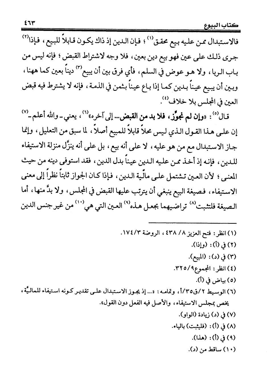 (¬6) الوسيط 2/ ق 35/ أ، وتمامه: " ... إذ يجوز الاستبدال على تقدير كونه استيفاء للماليَّة، يخص بمجلس الاستيفاء، والأصل فيه الفعل دون القول".
