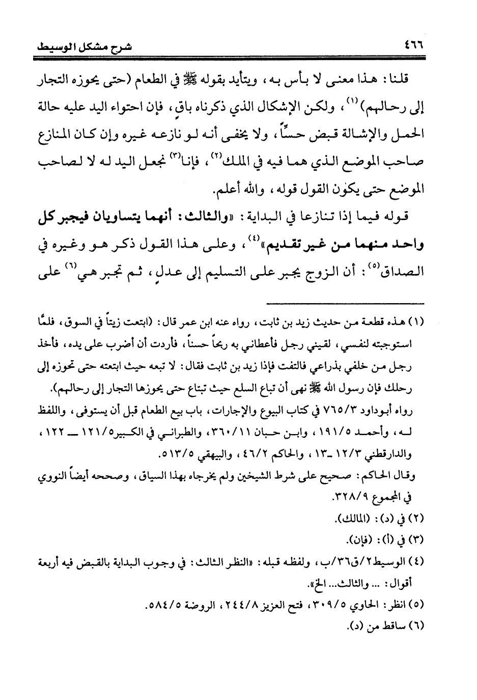 (¬4) الوسيط 2/ ق 36/ ب، ولفظه قبله: "النظر الثالث: في وجوب البداية بالقبض فيه أربعة أقوال: ... والثالث ... إلخ".