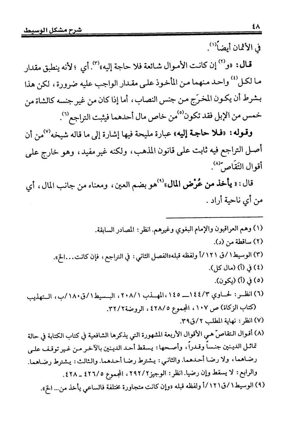 (¬3) الوسيط 1/ ق 121/ أولفظه قبله "الفصل الثاني: في التراجع، فإن كانت ... إلخ".