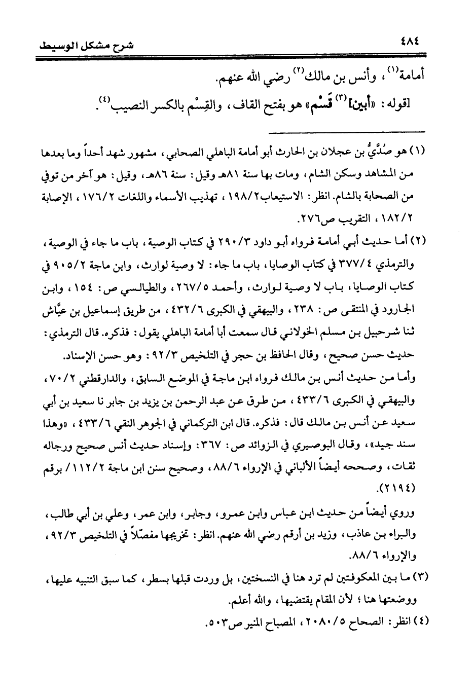 (¬1) هو صُدَّيُّ بن عجلان بن الحارث أبو أمامة الباهلي الصحابي، مشهور شهد أحداً وما بعدها من المشاهد وسكن الشام, ومات بها سنة 81 هـ وقيل: سنة 86 هـ، وقيل: هو آخر من توفي من الصحابة بالشام. انظر: الاستيعاب 2/ 198، تهذيب الأسماء واللغات 2/ 176، الإصابة 2/ 182، التقريب ص 276.