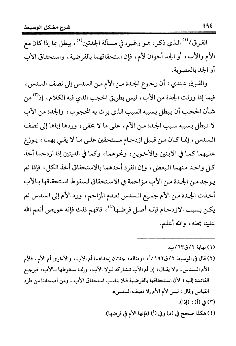 (¬4) هكذا صحح في (د) وفي (أ) (فإنها الأم في فرضها).