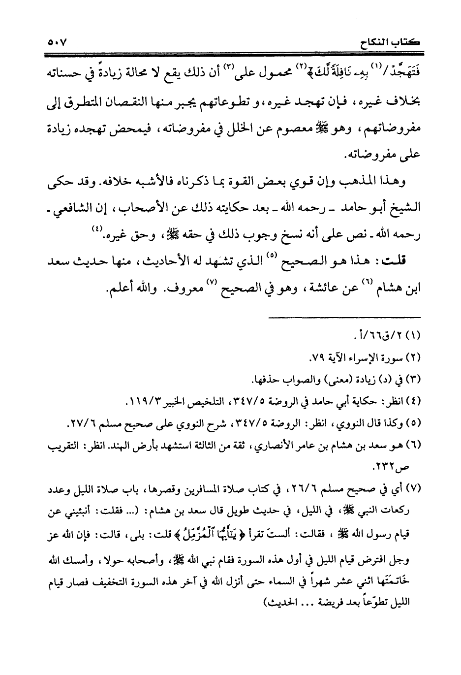 قلت: هذا هو الصحيح (¬5) الذي تشهد له الأحاديث، منها حديث سعد ابن هشام (¬6) عن عائشة، وهو في الصحيح (¬7) معروف. والله أعلم.