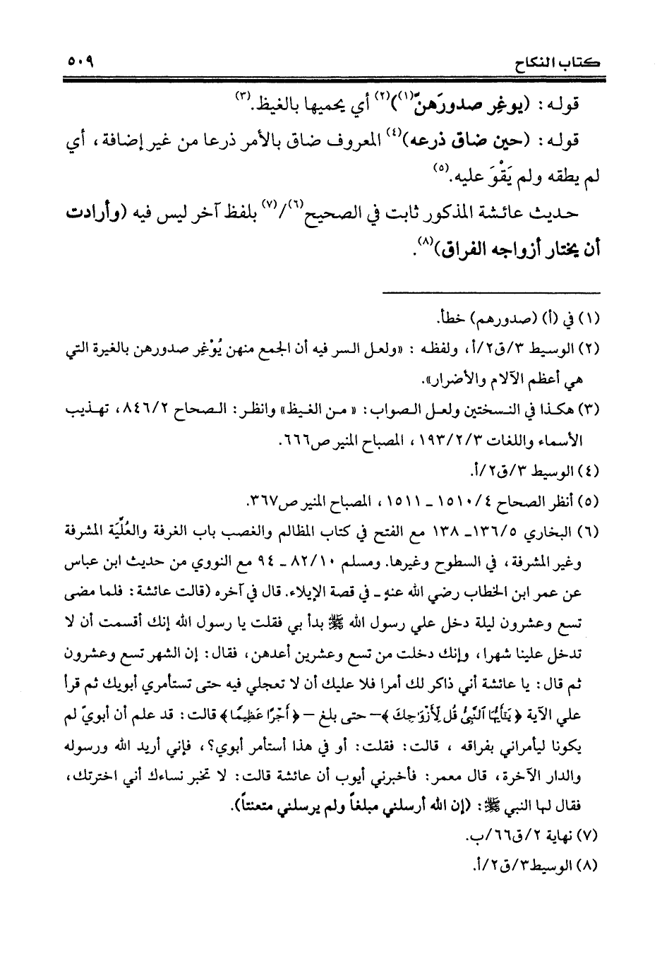 (¬2) الوسيط 3/ ق 2/ أ، ولفظه: "ولعل السر فيه أن الجمع منهن يُوْغِر صدورهن بالغيرة التي هي أعظم الآلام والأضرار".