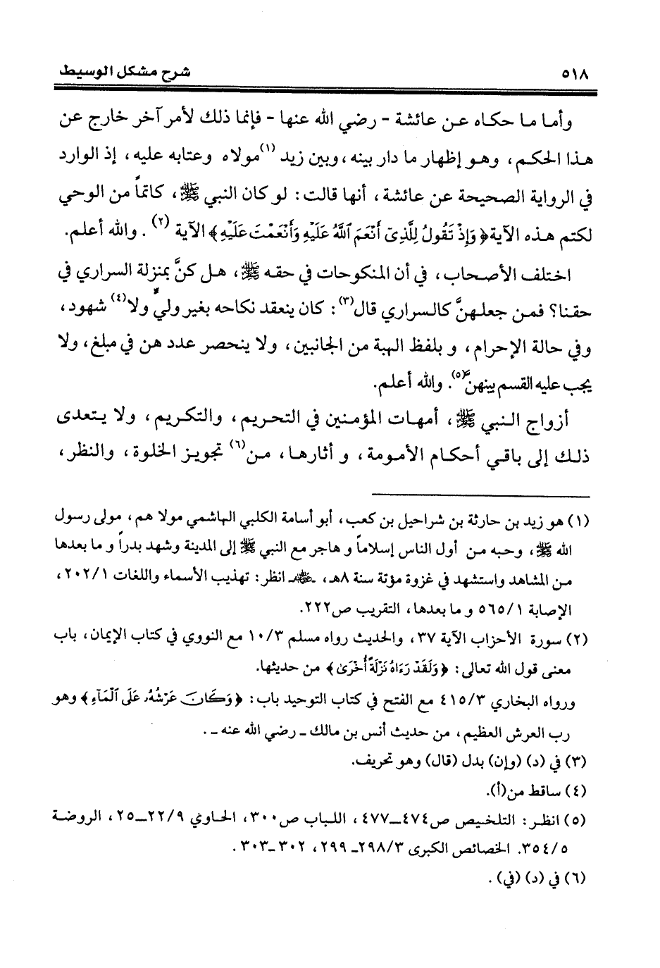 وأما ما حكاه عن عائشة - رضي الله عنها - فإنما ذلك لأمر آخر خارج عن هذا الحكم، وهو إظهار ما دار بينه، وبين زيد (¬1) مولاه وعتابه عليه، إذ الوارد في الرواية الصحيحة عن عائشة، أنها قالت: لو كان النبي - صلى الله عليه وسلم -، كاتماً من الوحي لكتم هذه الآية {وَإِذْ تَقُولُ لِلَّذِي أَنْعَمَ اللَّهُ عَلَيْهِ وَأَنْعَمْتَ عَلَيْهِ} الآية (¬2). والله أعلم.