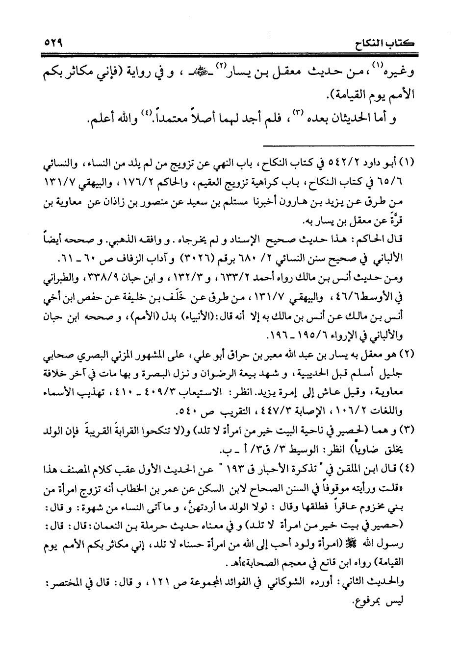 (¬1) أبو داود 2/ 542 في كتاب النكاح، باب النهي عن تزويج من لم يلد من النساء، والنسائي 6/ 65 في كتاب النكاح، باب كراهية تزويج العقيم، والحاكم 2/ 176، والبيهقي 7/ 131 من طرق عن يزيد بن هارون أخبرنا مستلم بن سعيد عن منصور بن زاذان عن معاوية بن قرَّةَ عن معقل بن يسار به.