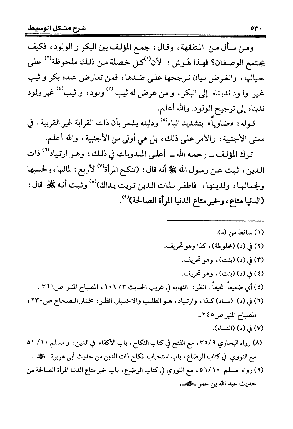 (¬9) رواه مسلم 10/ 56، مع النووي في كتاب الرضاع، باب خير متاع الدنيا المرأة الصالحة من حديث عبد الله بن عمر - رضي الله عنه -.