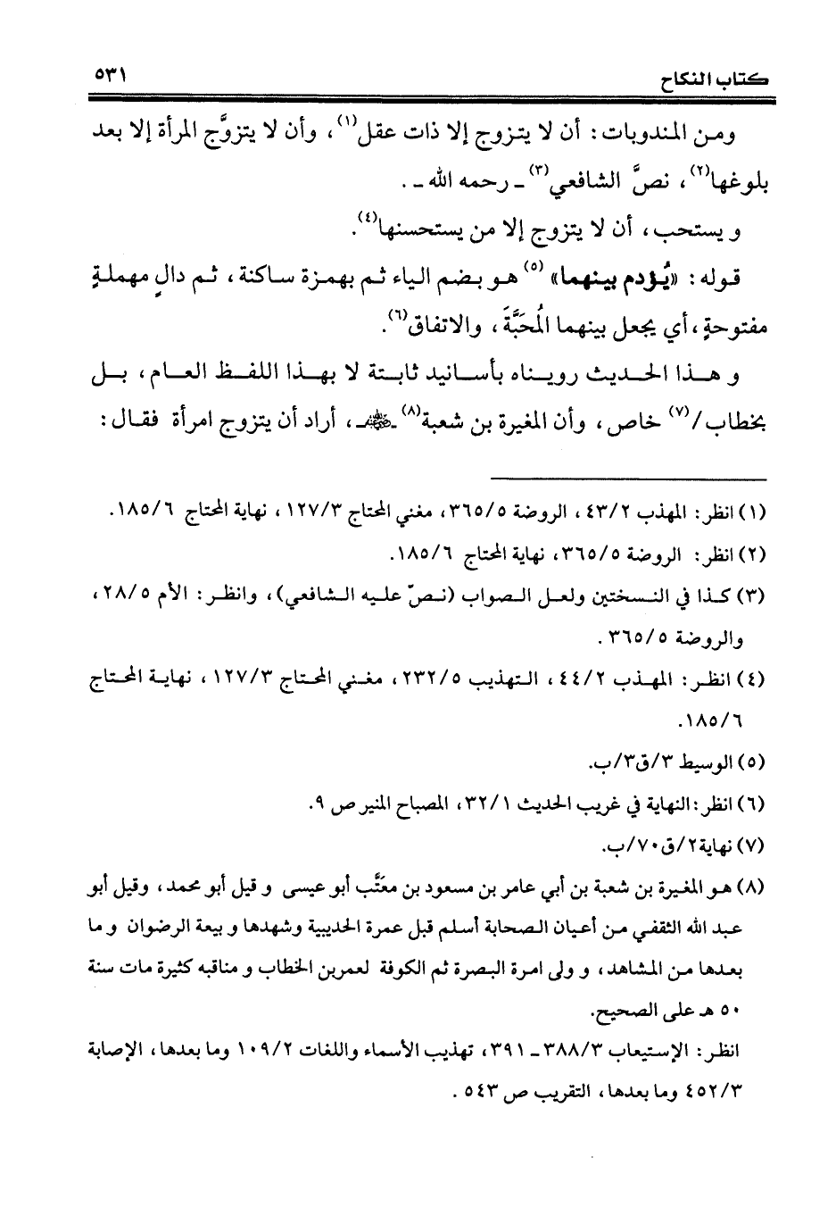 وهذا الحديث رويناه بأسانيد ثابتة لا بهذا اللفظ العام، بل بخطاب (¬7) خاص، وأن المغيرة بن شعبة (¬8) - رضي الله عنه -، أراد أن يتزوج امرأة فقال: