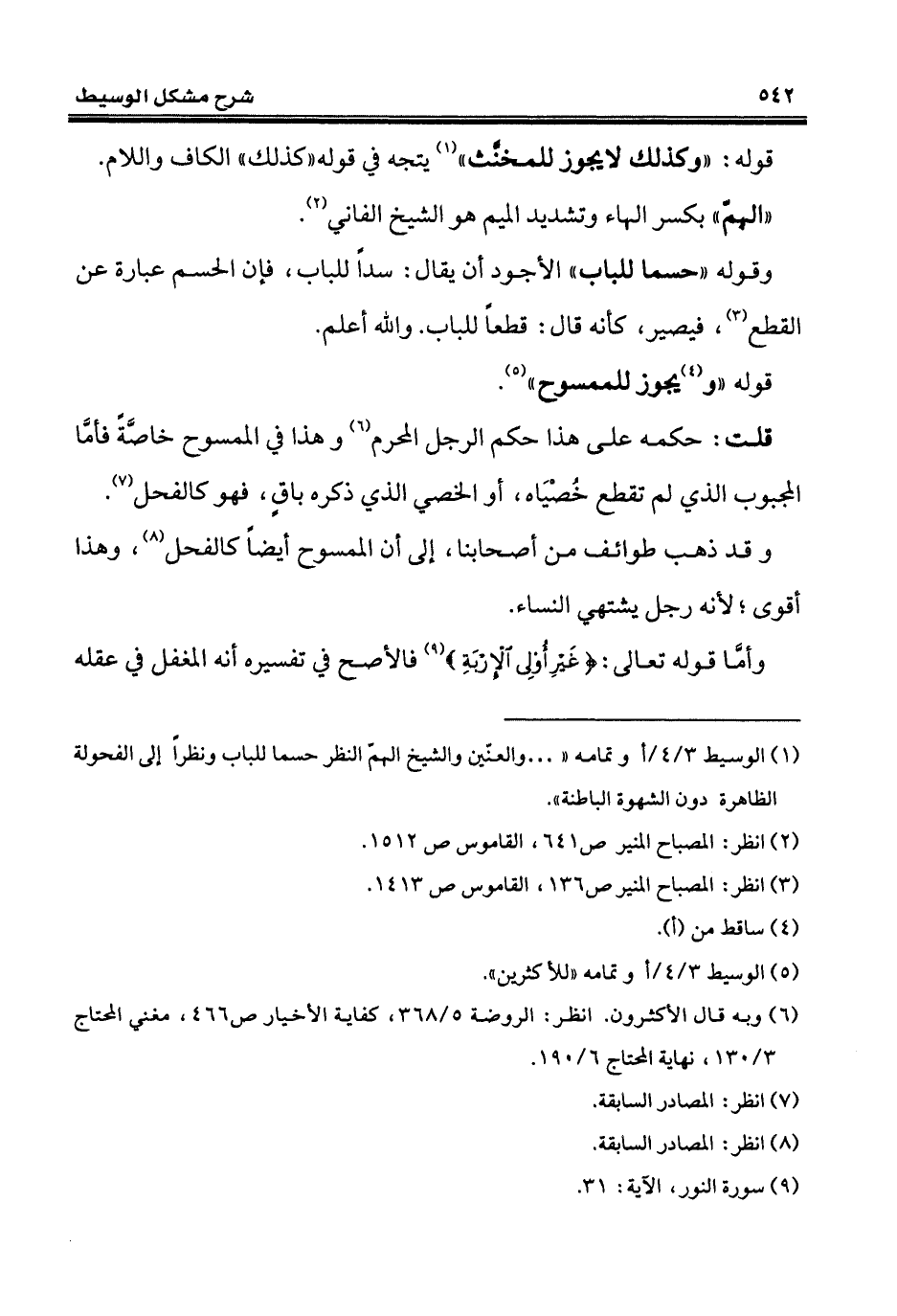 (¬1) الوسيط 3/ 4/ أوتمامه " ... والعنّين والشيخ الهمّ النظر حسما للباب ونظراً إلى الفحولة الظاهرة دون الشهوة الباطنة".