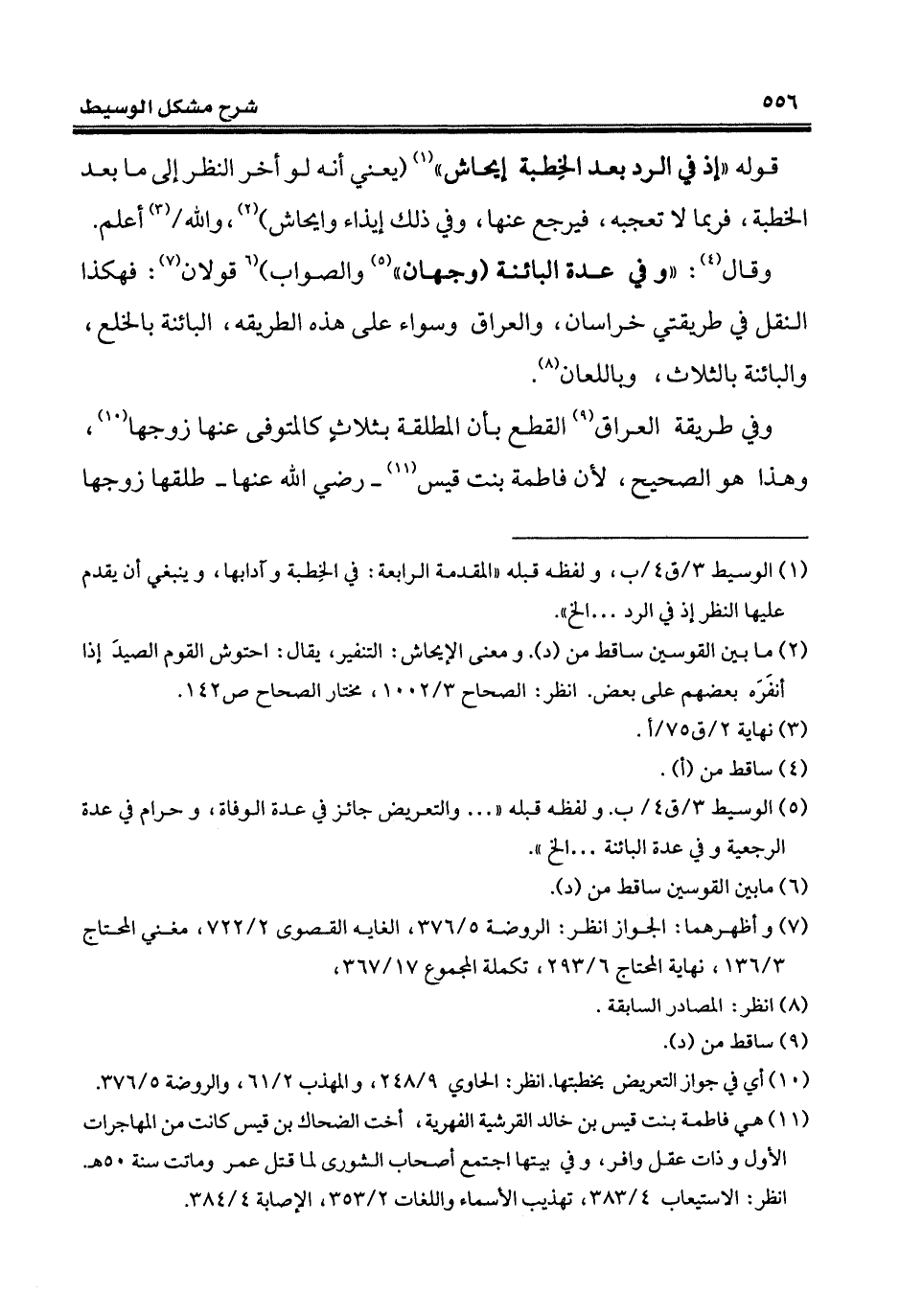 (¬5) الوسيط 3/ ق 4/ ب. ولفظه قبله " ... والتعريض جائز في عدة الوفاة، وحرام في عدة الرجعية وفي عدة البائنة ... إلخ".