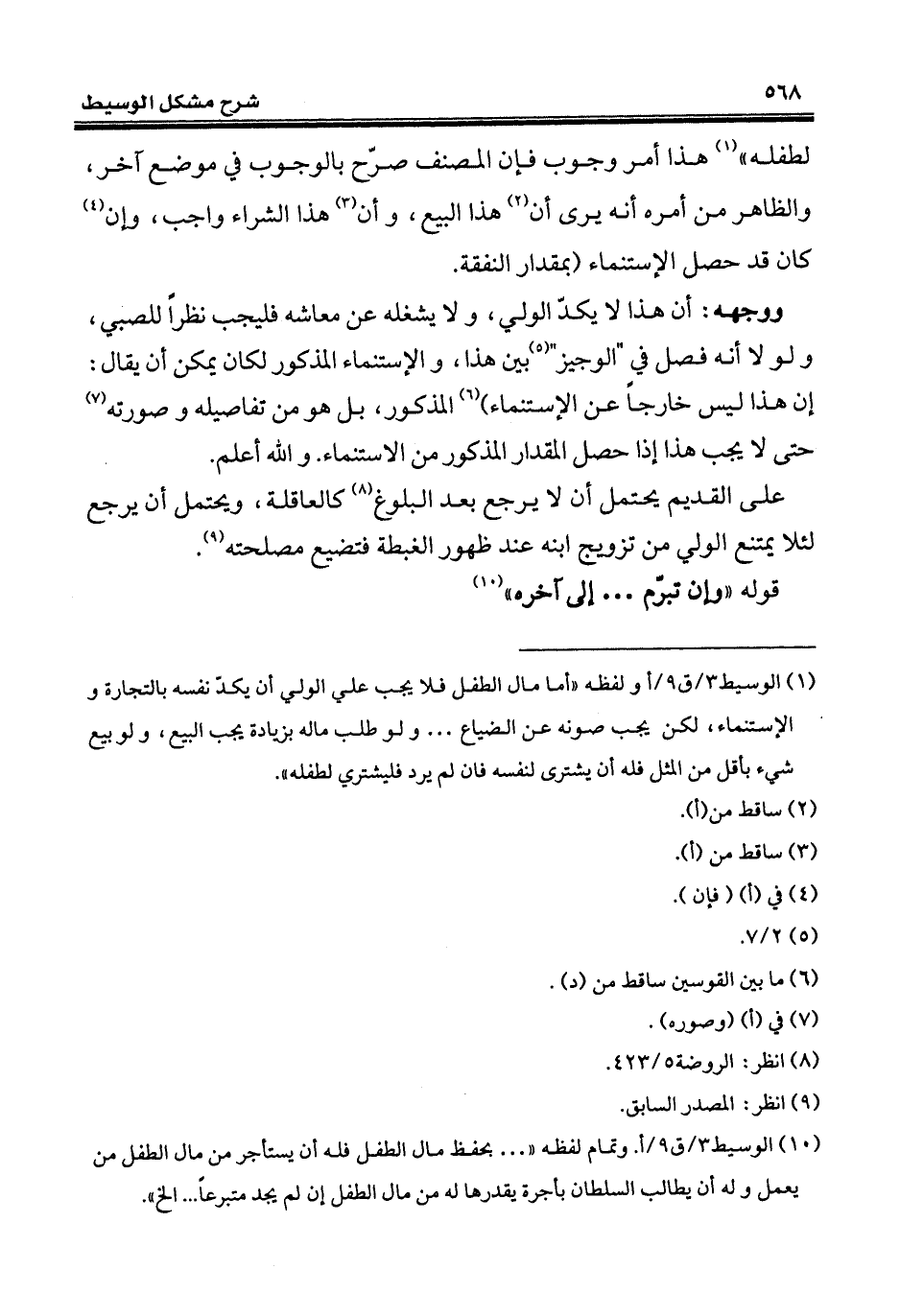 (¬10) الوسيط 3/ ق 9/ أ. وتمام لفظه " ... بحفظ مال الطفل فله أن يستأجر من مال الطفل من يعمل وله أن يطالب السلطان بأجرة يقدرها له من مال الطفل إن لم يجد متبرعاً ... إلخ".