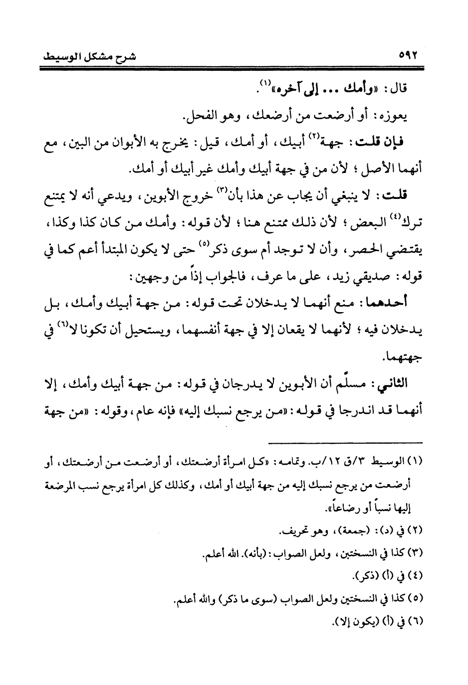 (¬1) الوسيط 3/ ق 12/ ب. وتمامه: "كل امرأة أرضعتك، أو أرضعت من أرضعتك، أو أرضعت من يرجع نسبك إليه من جهة أبيك أو أمك، وكذلك كل امرأة يرجع نسب المرضعة إليها نسباً أو رضاعاً".