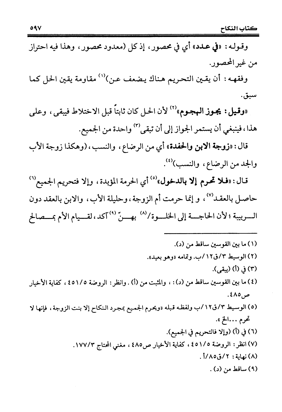 (¬5) الوسيط 3/ ق 12/ ب ولفظه قبله "ويحرم الجميع بمجرد النكاح إلا بنت الزوجة، فإنها لا تحرم ... إلخ".