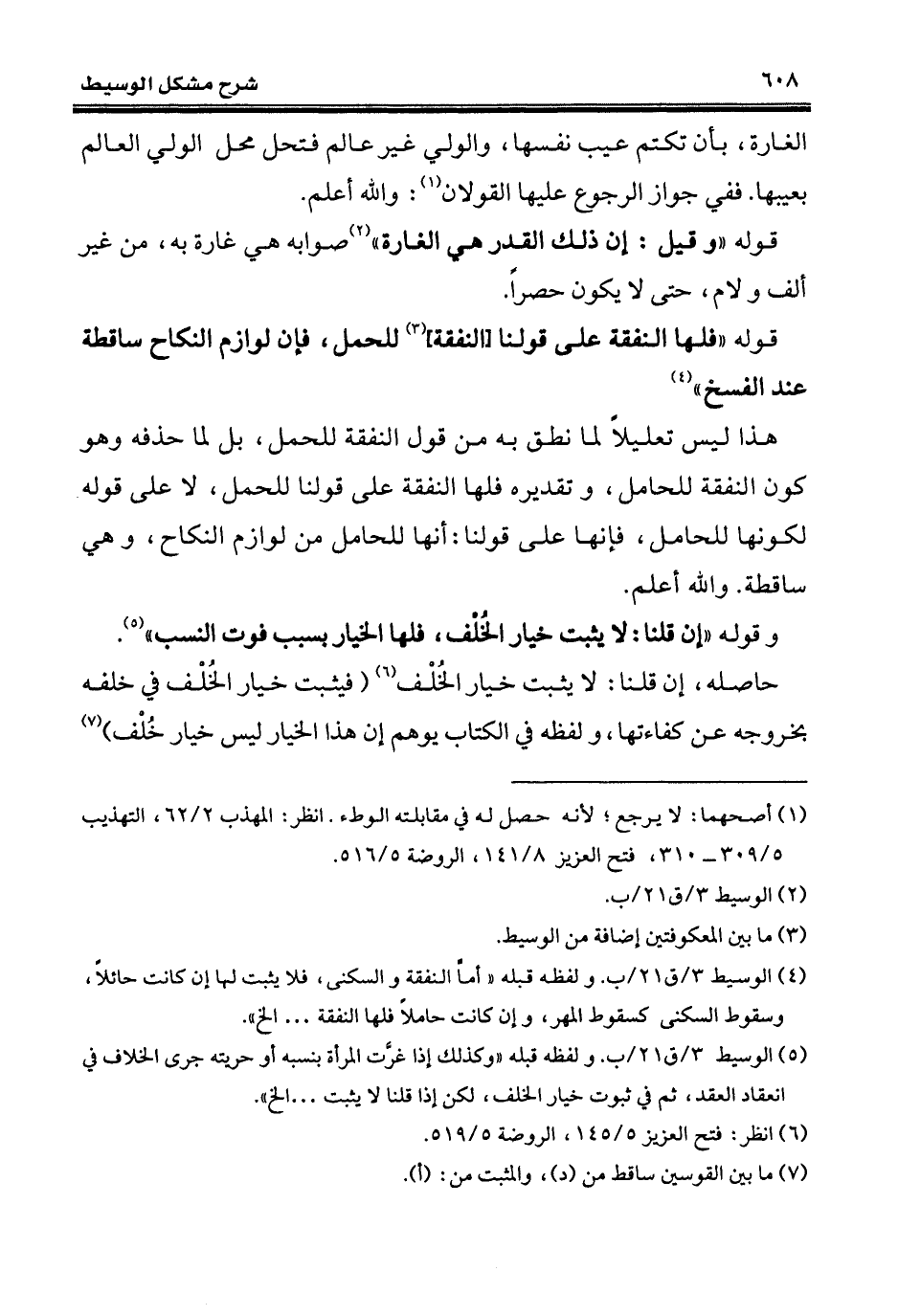 (¬5) الوسيط 3/ ق 21/ ب. ولفظه قبله "وكذلك إذا غرَّت المرأة بنسبه أو حريته جرى الخلاف في انعقاد العقد، ثم في ثبوت خيار الخلف، لكن إذا قلنا لا يثبت ... إلخ".