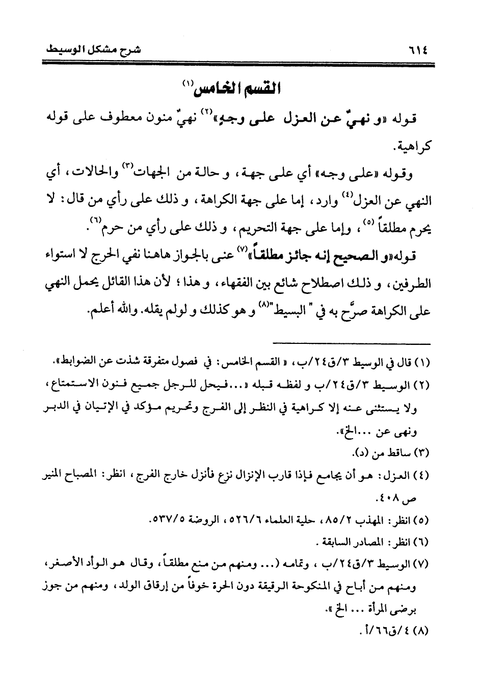 (¬7) الوسيط 3/ ق 24/ ب، وتمامه (... ومنهم من منع مطلقاً، وقال هو الوأد الأصغر، ومنهم من أباح في المنكوحة الرقيقة دون الحرة خوفاً من إرقاق الولد، ومنهم من جوز برضى المرأة ... إلخ".