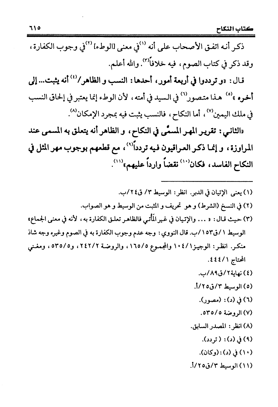 (¬1) يعني الإتيان في الدبر. انظر: الوسيط 3/ ق 24/ ب.