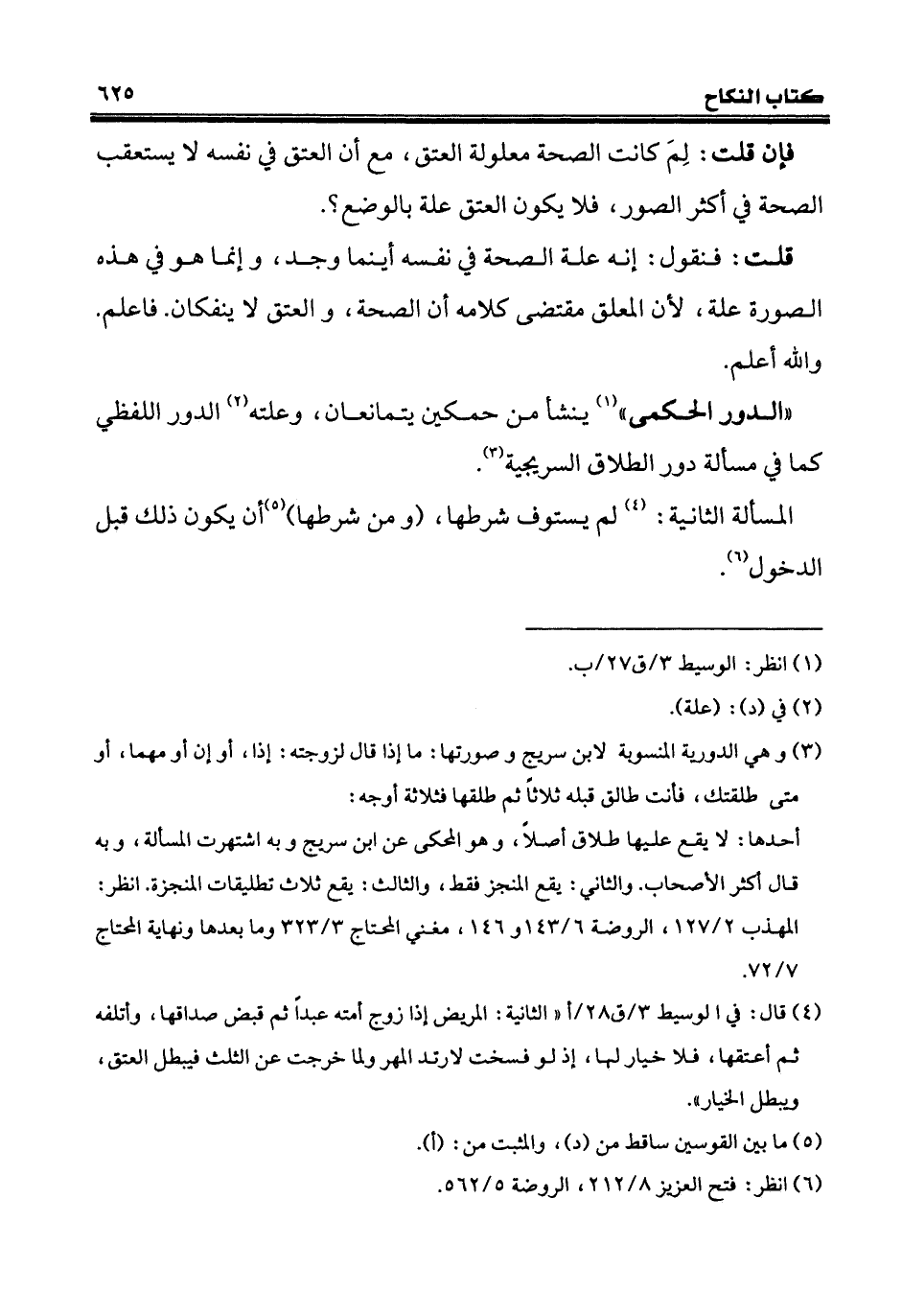 "الدور الحكمى" (¬1) ينشأ من حكمين يتمانعان، وعلته (¬2) الدور اللفظي كما في مسألة دور الطلاق السريجية (¬3).