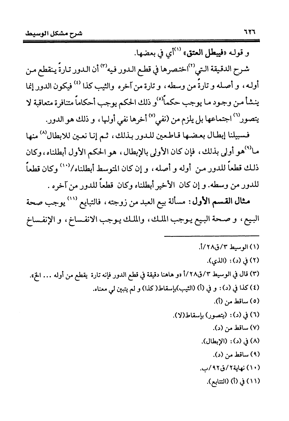 (¬3) قال في الوسيط 3/ ق 28/ أ "وها هنا دقيقة في قطع الدور فإنه تارة يقطع من أوله ... إلخ".
