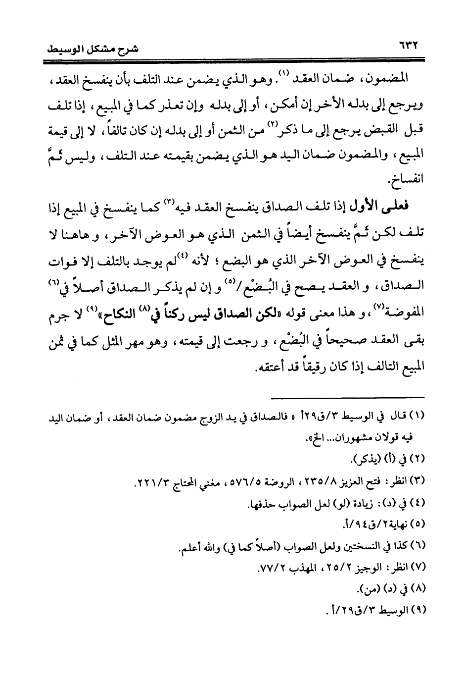 (¬1) قال في الوسيط 3/ ق 29/ أ "فالصداق في يد الزوج مضمون ضمان العقد، أو ضمان اليد فيه قولان مشهوران ... إلخ".