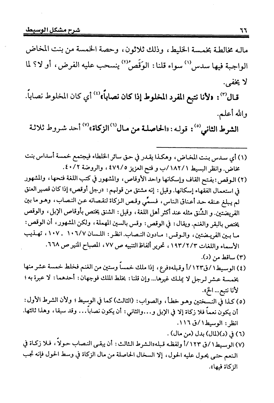 (¬7) الوسيط 1/ ق 123/ أولفظه قبله "الشرط الثالث: أن يبقى النصاب حولاً، فلا زكاة في النعم حتى يحول عليه الحول، إلا السخال الحاصلة من مال الزكاة في وسط الحول فإنه تجب الزكاة فيها".