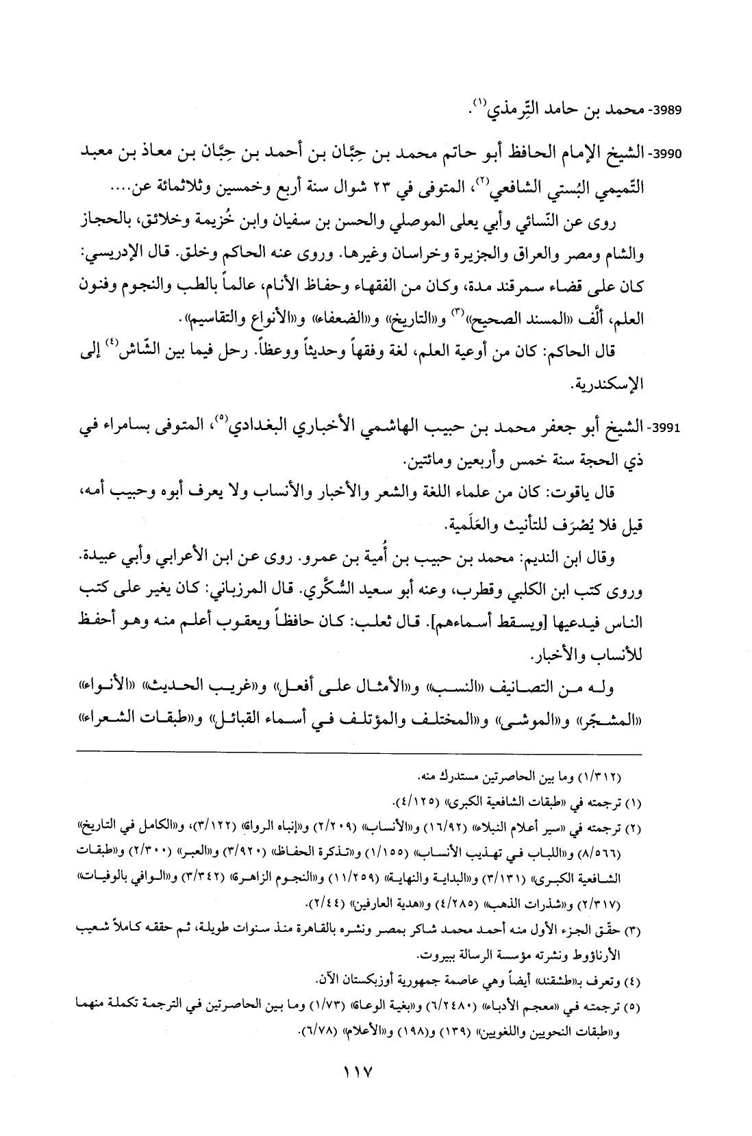 3991 - الشيخ أبو جعفر محمد بن حبيب الهاشمي الأخباري البغدادي (¬5)، المتوفى بسامراء في ذي الحجة سنة خمس وأربعين ومائتين.