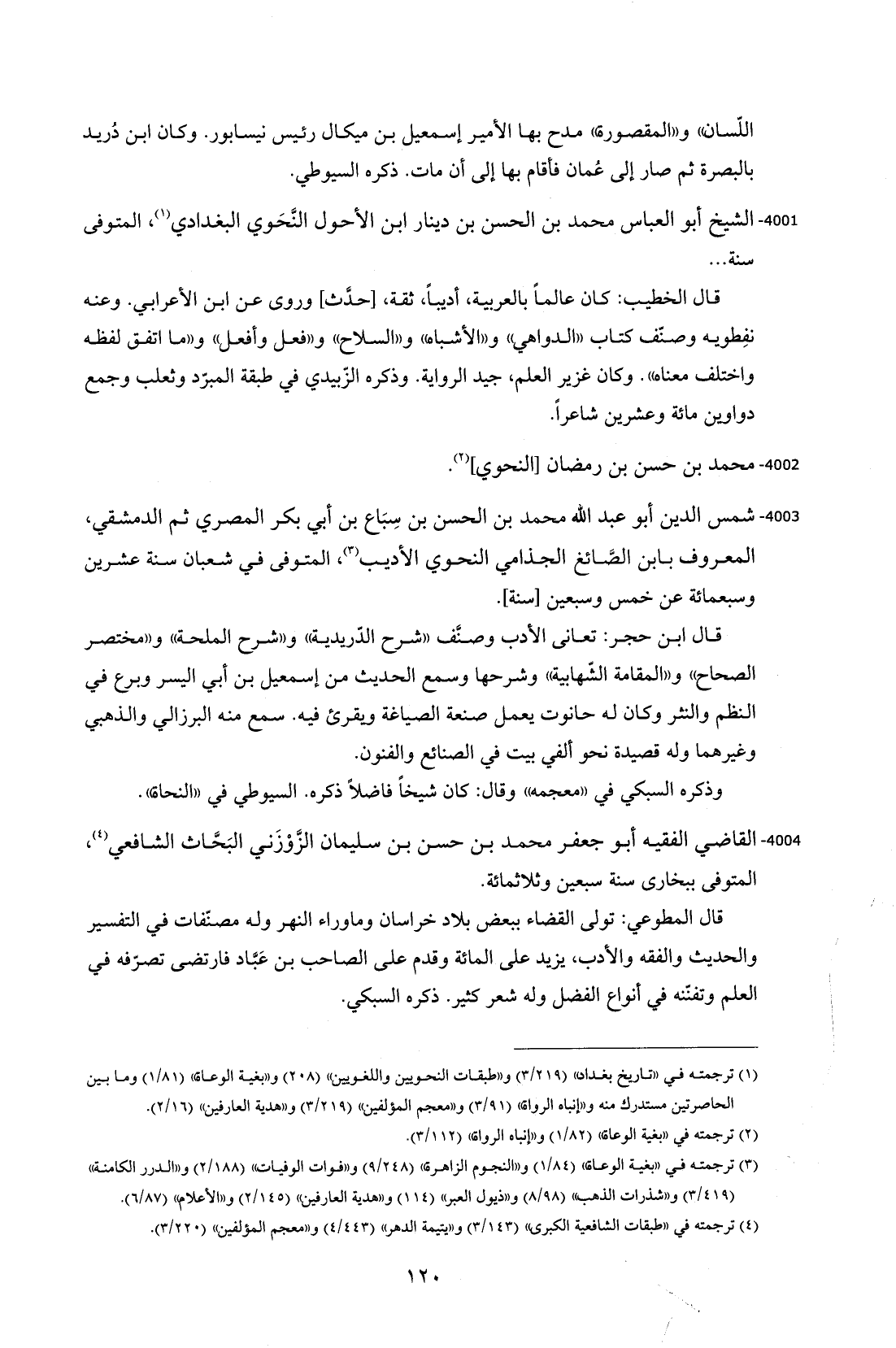4001 - الشيخ أبو العباس محمد بن الحسن بن دينار ابن الأحول النًحَوي البغدادي (¬1)، المتوفى سنة ...