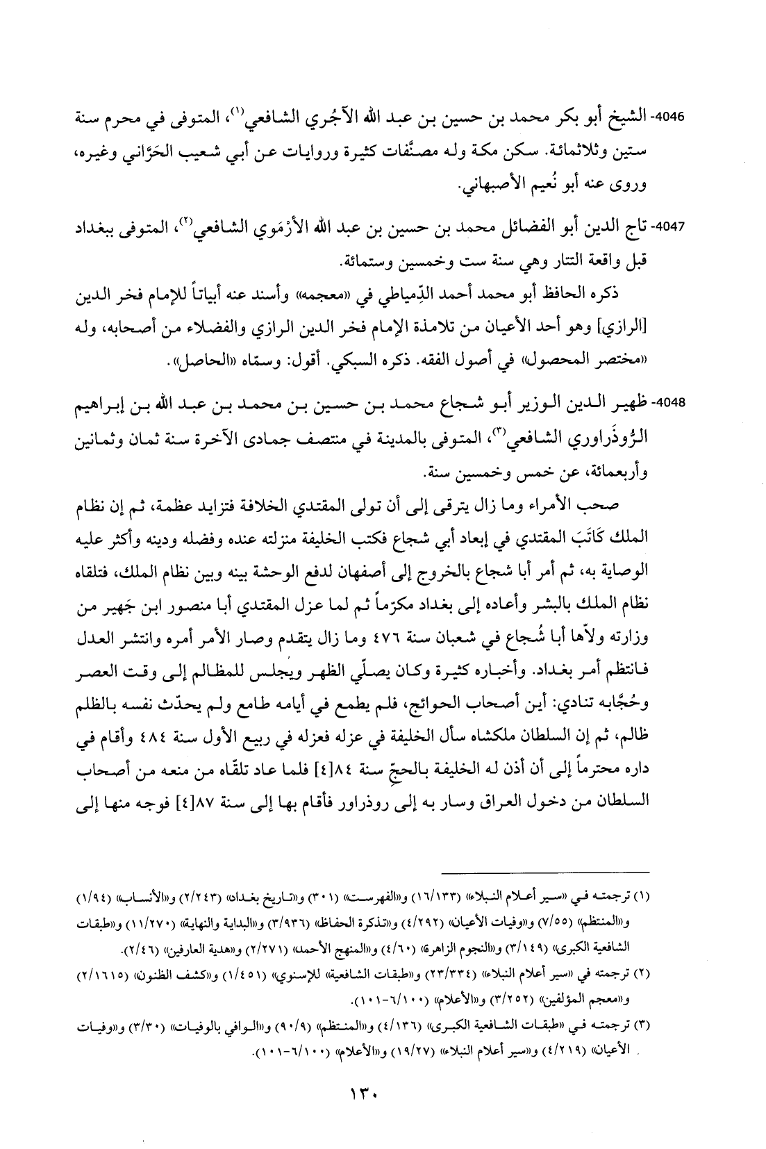 (¬2) ترجمته في "سير أعلام النبلاء" (23/ 334) و"طبقات الشافعية" للإسنوي" (1/ 451) و"كشف الظنون" (2/ 1615) و"معجم المؤلفين" (3/ 252) و"الأعلام" (6/ 100 - 101).