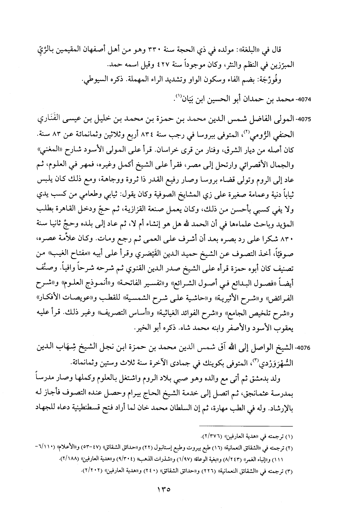 4075 - المولى الفاضل شمس الدين محمد بن حمزة بن محمد بن خليل بن عيسى الفَنَاري الحنفي الرّومي (¬2)، المتوفى ببروسا في رجب سنة 834 أربع وثلاثين وثمانمائة عن 83 سنة.