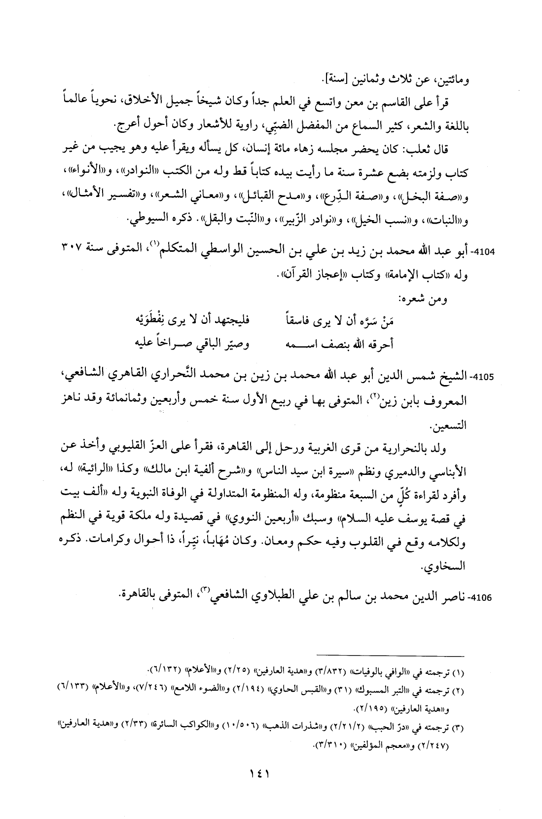 4104 - أبو عبد الله محمد بن زيد بن علي بن الحسين الواسطي المتكلم (¬1)، المتوفى سنة 307 وله "كشاب الإمامة" وكتاب "إعجاز القرآن".