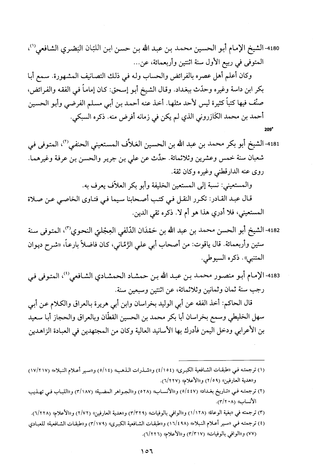 4183 - الإمام أبو منصور محمد بن عبد الله بن حمشاد الحمشادي الشافعي (¬4)، المتوفى في رجب سنة ثمان وثمانين وثلاثمائة، عن اثنتين وسبعين سنة.