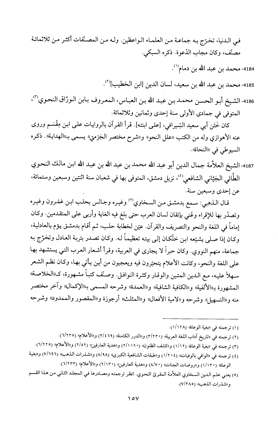4187 - الشيخ العلاَّمة جمال الدين أبو عبد الله محمد بن عبد الله بن عبد الله ابن مالك النحوي الطَّائي الجَيَّاني الشافعي (¬4)، نزيل دمشق، المتوفى بها في شعبان سنة اثنتين وسبعين وستمائة، عن إحدى وسبعين سنة.