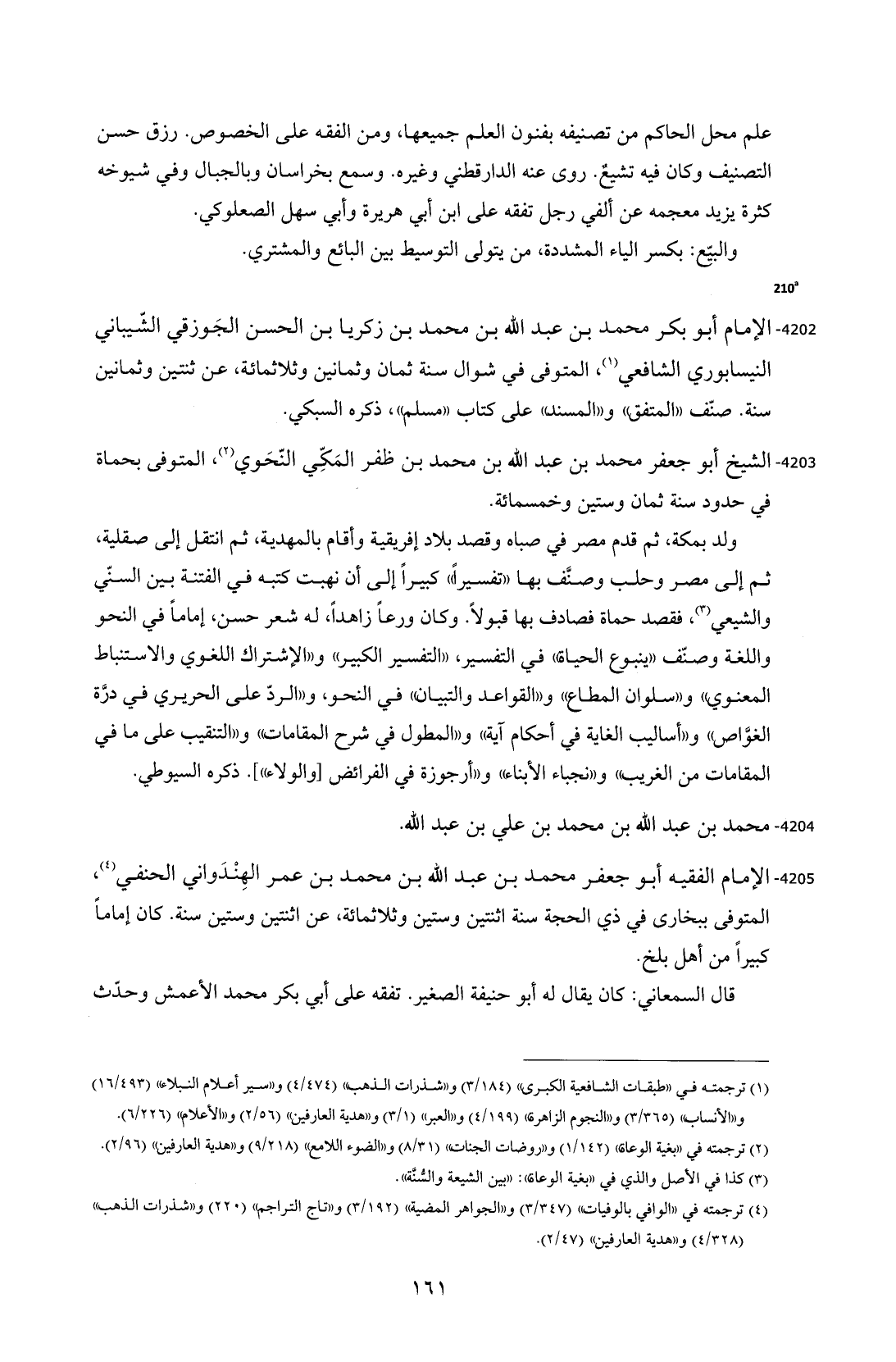 4205 - الإمام الفقيه أبو جعفر محمد بن عبد الله بن محمد بن عمر الهِنْدَواني الحنفي (¬4)، المتوفى ببخارى في ذي الحجة سنة اثنتين وستين وثلاثمائة، عن اثنتين وستين سنة. كان إماماً كبيراً من أهل بلخ.