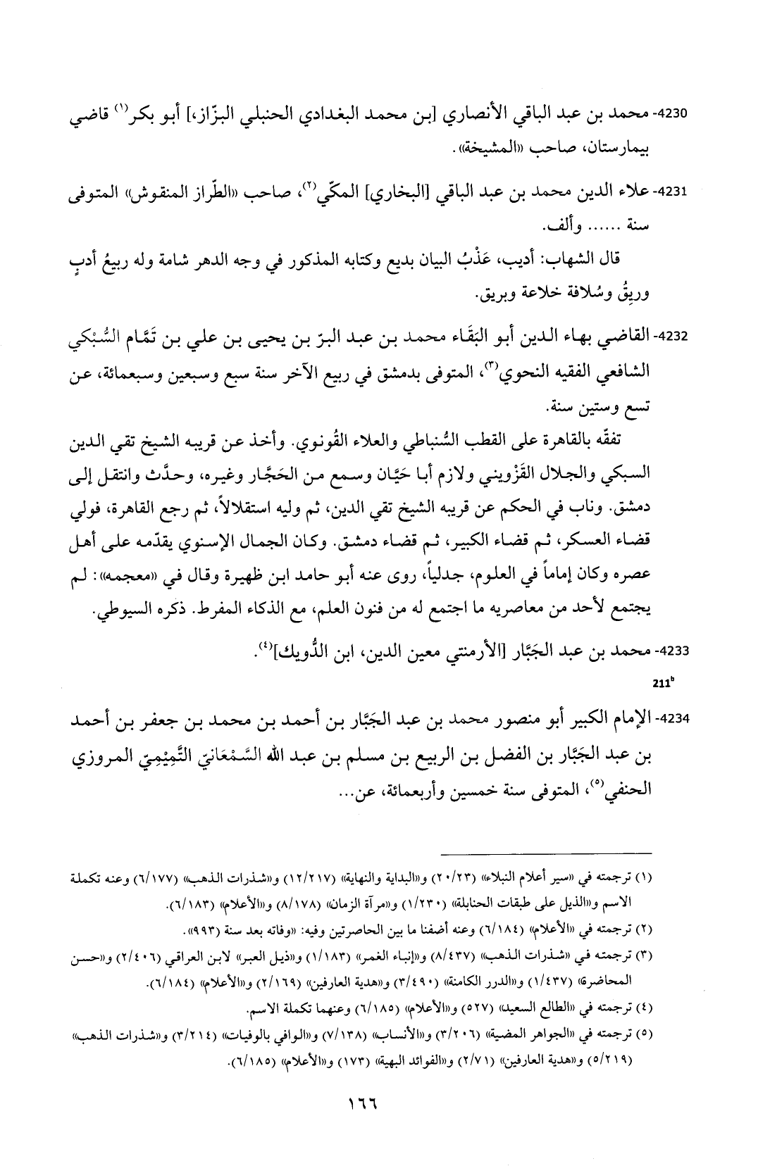 (¬5) ترجمته في "الجواهر المضية" (3/ 206) و"الأنساب" (7/ 138) و"الوافي بالوفيات" (3/ 214) و"شذرات الذهب" (5/ 219) و"هدية العارفين" (2/ 71) و"الفوائد البهية" (173) و"الأعلام" (6/ 185).