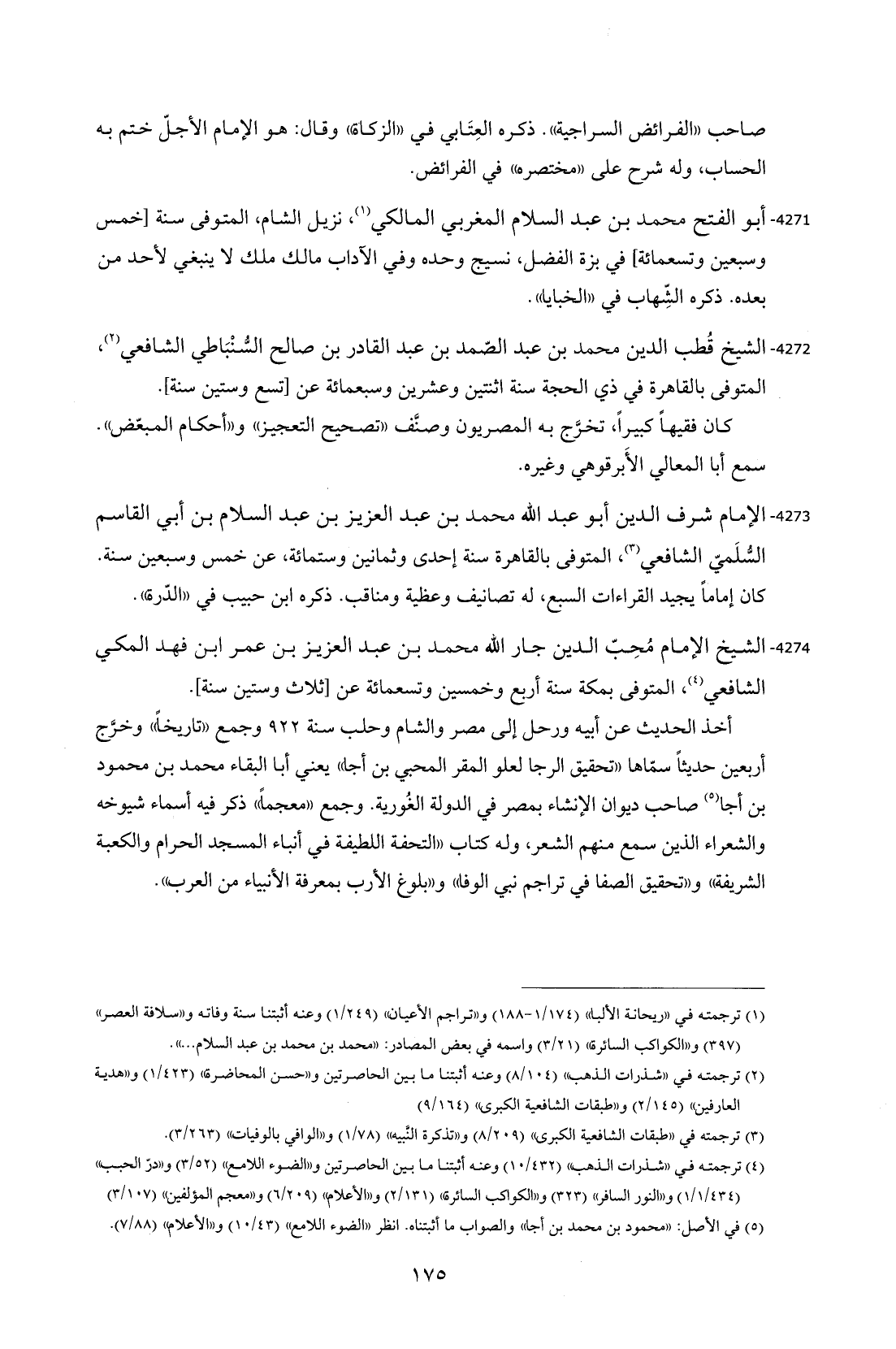 (¬2) ترجمته في "شذرات الذهب" (8/ 104) وعنه أثبتنا ما بين الحاصرتين و"حسن المحاضرة" (1/ 423) و "هدية العارفين" (2/ 145) و "طبقات الشافعية الكبرى" (9/ 164)