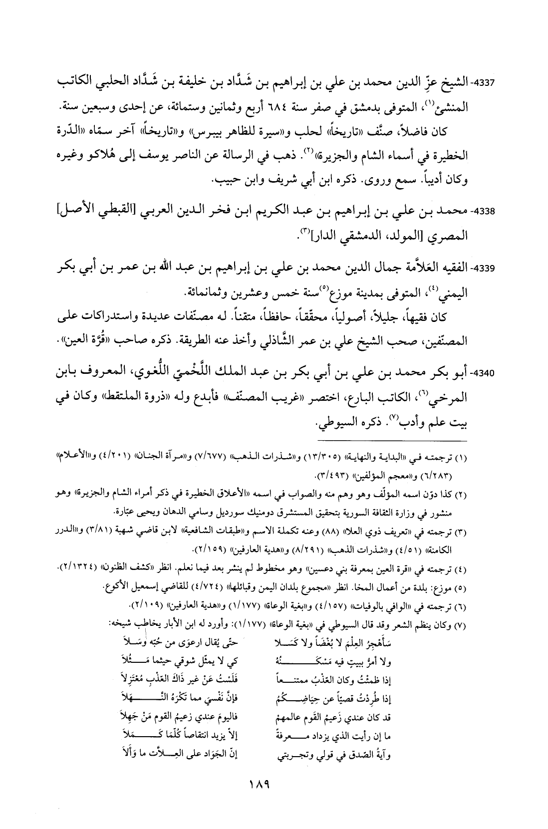 4337 - الشيخ عزِّ الدين محمد بن علي بن إبراهيم بن شَدَّاد بن خليفة بن شَدَّاد الحلبي الكاتب المنشئ (¬1)، المتوفى بدمشق في صفر سنة 684 أربع وثمانين وستمائة، عن إحدى وسبعين سنة.