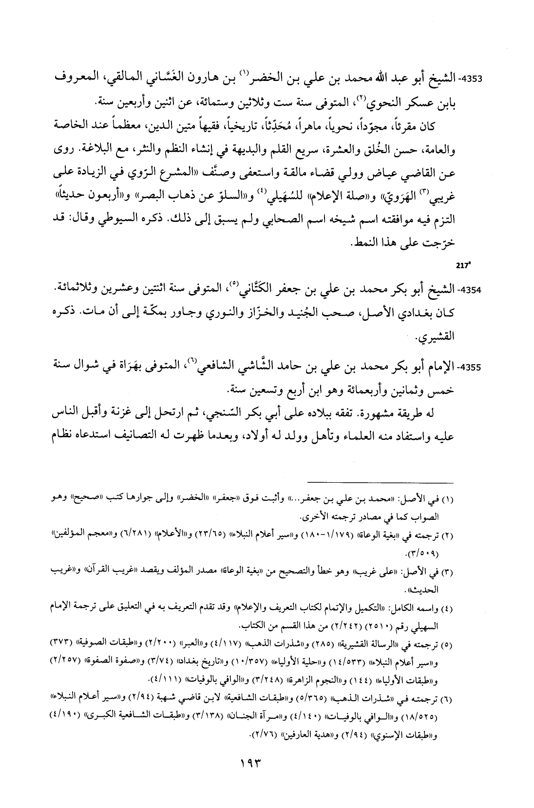 4354 - الشيخ أبو بكر محمد بن علي بن جعفر الكَتَّاني (¬5)، المتوفى سنة اثنتين وعشرين وثلاثمائة.