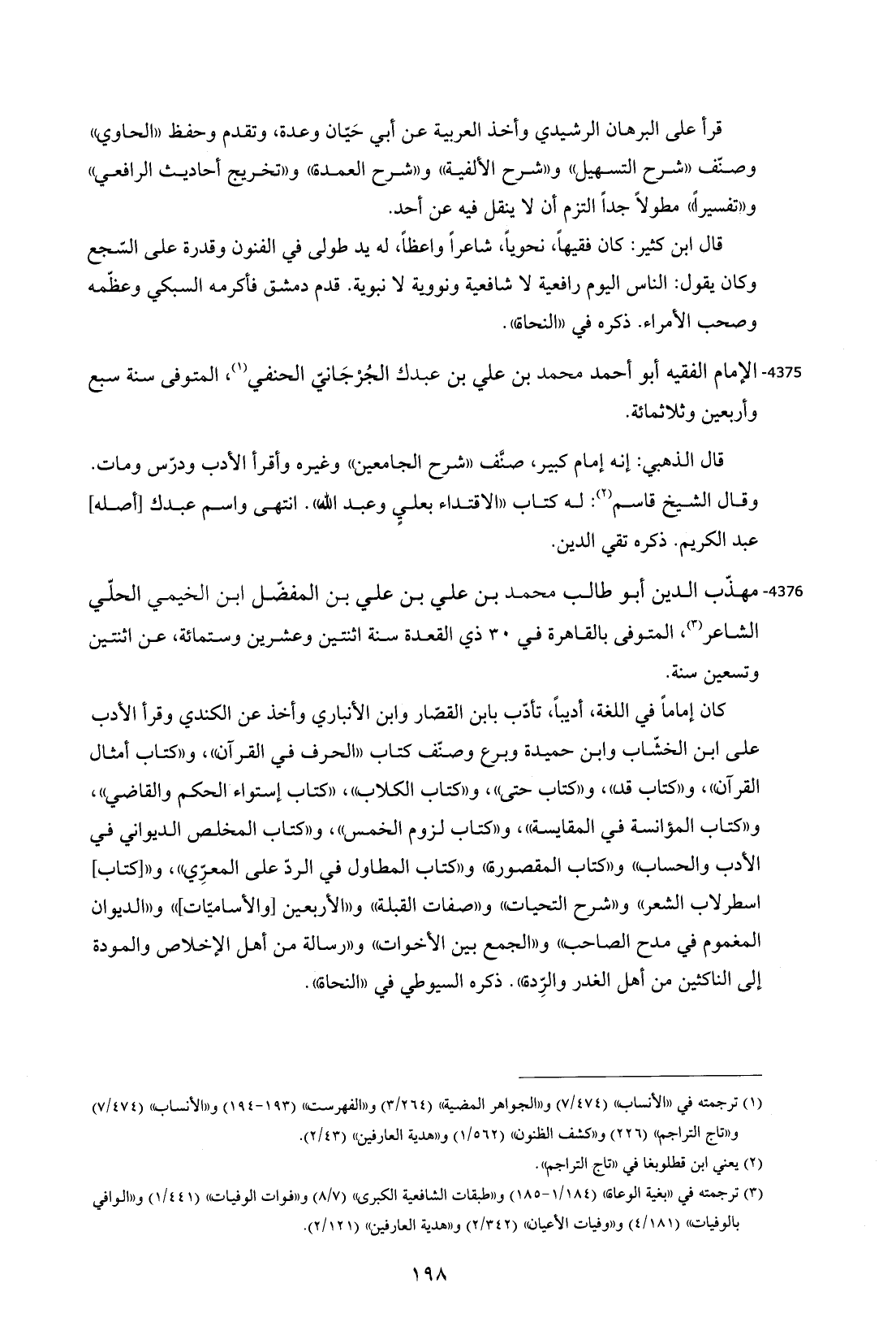 (¬1) ترجمته في "الأنساب" (7/ 474) و"الجواهر المضية" (3/ 264) و"الفهرست" (193 - 194) و"الأنساب" (7/ 474) و"تاج التراجم" (226) و"كشف الظنون" (1/ 562) و"هدية العارفين" (2/ 43).