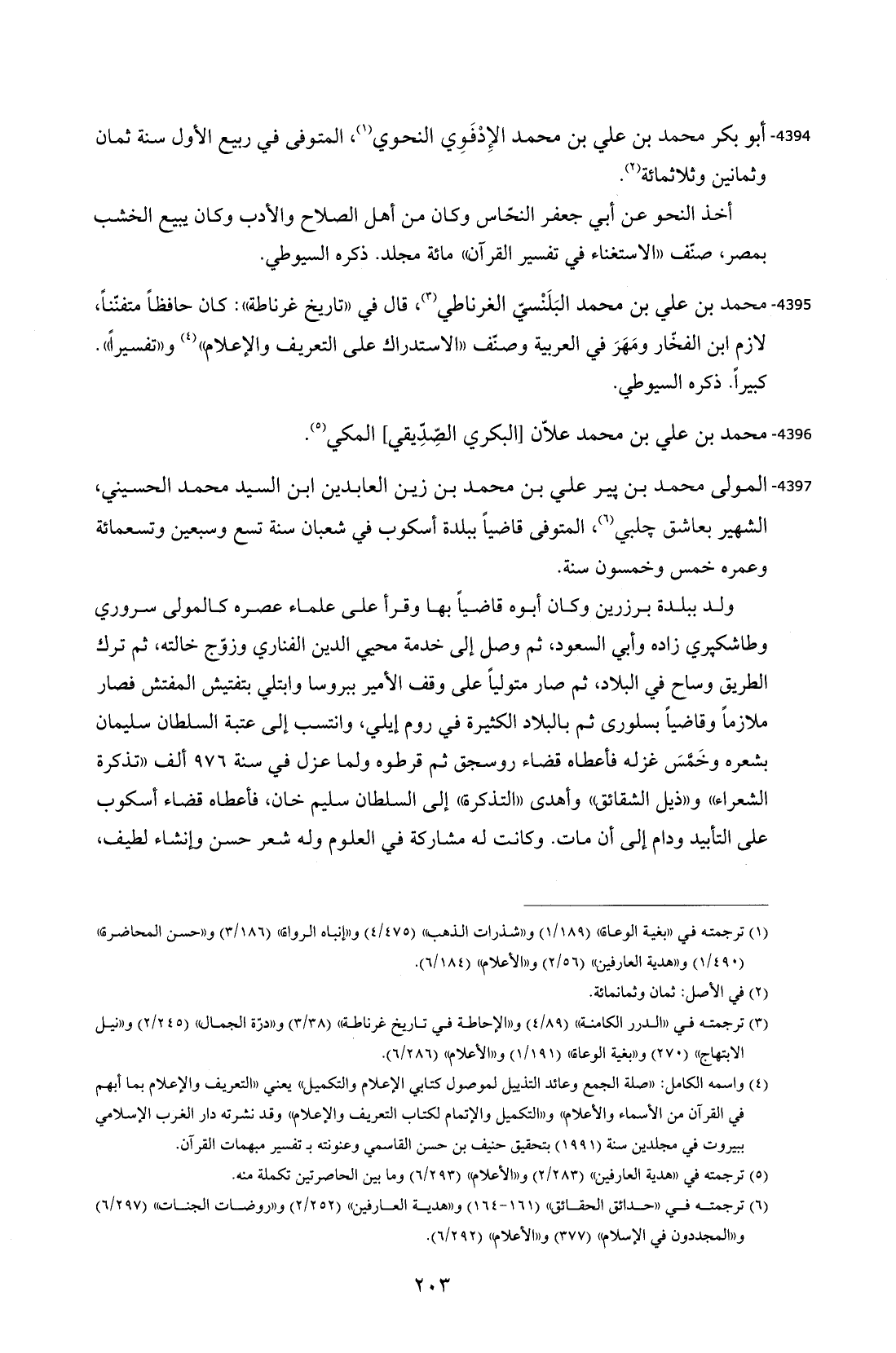 4395 - محمد بن علي بن محمد البَلَنْسيّ الغرناطي (¬3)، قال في "تاريخ غرناطة": كان حافظًا متفنّنًا، لازم ابن الفخّار ومَهَرَ في العربية وصنّف "الاستدراك على التعريف والإعلام" (¬4) و"تفسيرًا". كبيرًا. ذكره السيوطي.