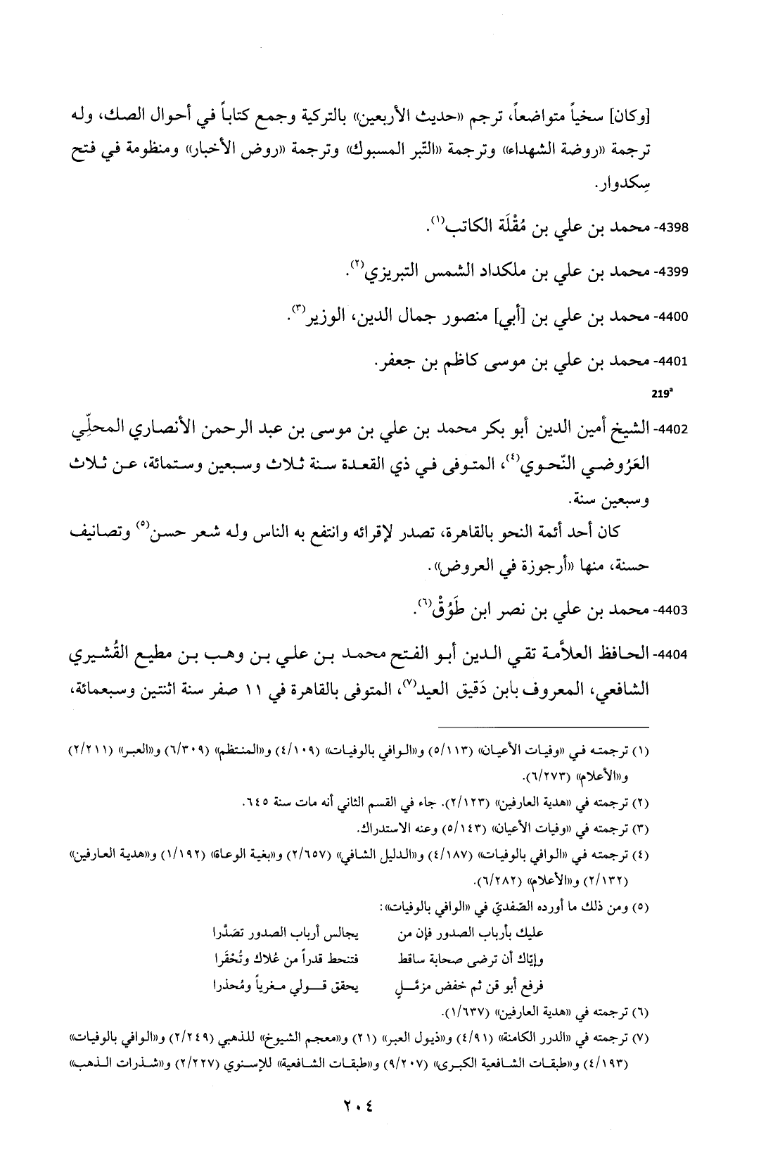 4404 - الحافظ العلاَّمة تقي الدين أبو الفتح محمد بن علي بن وهب بن مطيع القُشيري الشافعي، المعروف بابن دَقيق العيد (¬7)، المتوفى بالقاهرة في 11 صفر سنة اثنتين وسبعمائة،