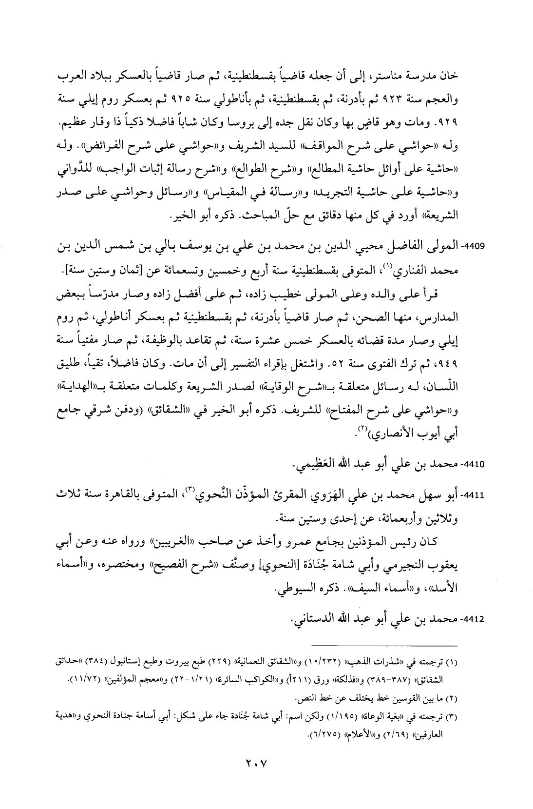 4409 - المولى الفاضل محيي الدين بن محمد بن علي بن يوسف بالي بن شمس الدين بن محمد الفناري (¬1)، المتوفى بقسطنطينية سنة أربع وخمسين وتسعمائة عن [ثمان وستين سنة].